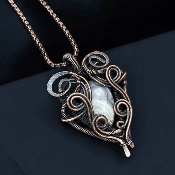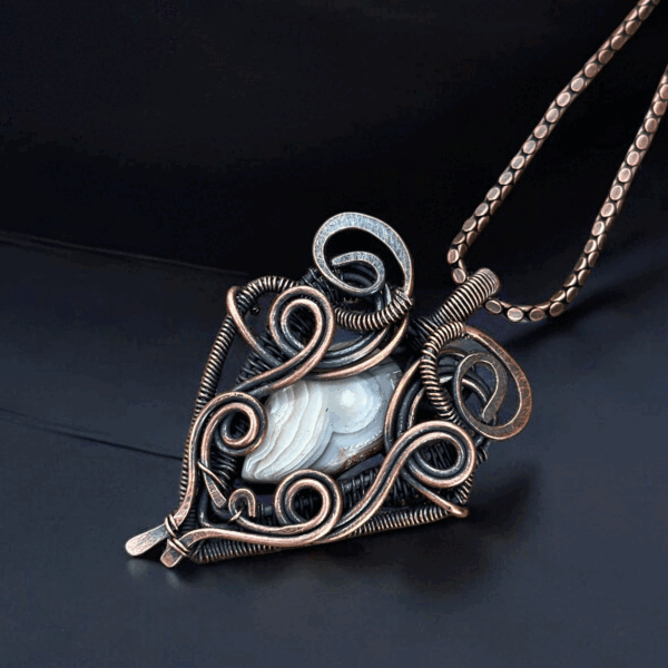 Each Crazy Lace Copper Pendant is carefully handmade by skilled artisans, ensuring that every creation boasts a unique charm. The copper is shaped into graceful forms and adorned with mesmerizing lace-like designs—patterns reminiscent of nature’s finest motifs. The craftsmanship guarantees durability and the pendant’s timeless appeal, making it an excellent addition to any jewelry collection.