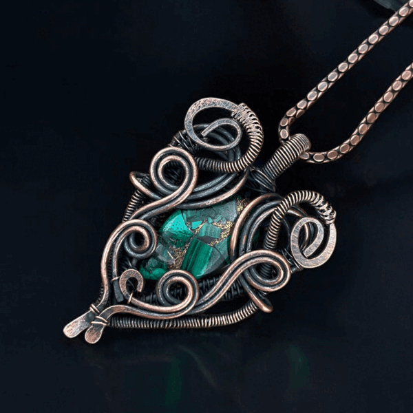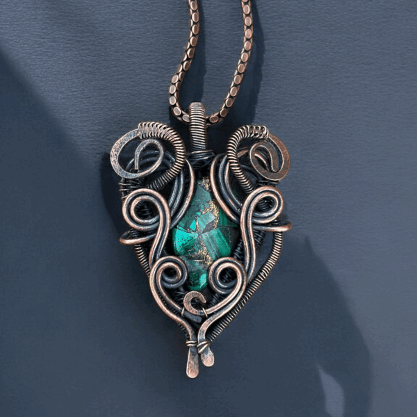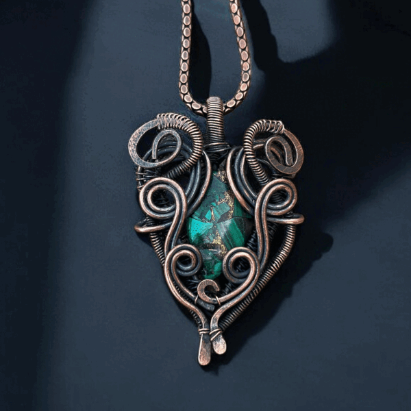 Elevate your accessory collection with our stunning Turquoise Copper Pendant, a masterpiece of handmade copper jewelry. Combining meticulous craftsmanship and artistic design, this pendant encapsulates the natural beauty of copper and turquoise, making it an ideal gift for her. Whether for a casual outing or a formal event, this unique piece stands out as an elegant yet versatile addition to any jewelry ensemble.