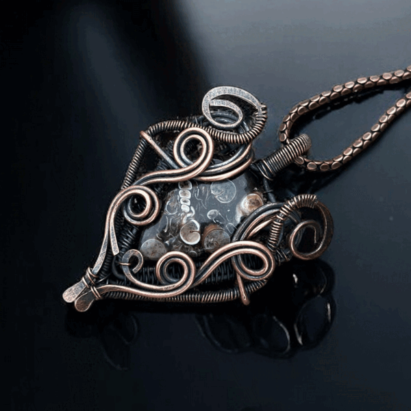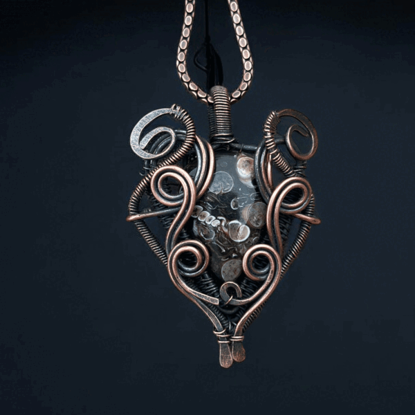 What makes this pendant special is the detail and dedication poured into every design element. The focal point, a jasper stone, celebrates its natural patterns and textures, showcasing authenticity that no factory-made jewelry can replicate. Encased in a layer of high-quality copper, the pendant not only exudes warmth but also offers durability for your daily adventures. The handmade nature ensures that every pendant is one-of-a-kind, a true testament to the artisan’s skill and passion.