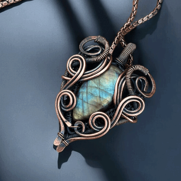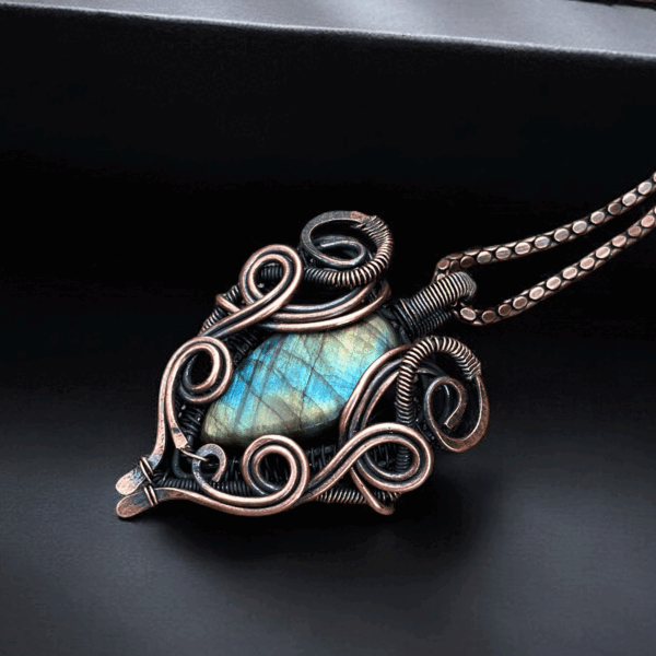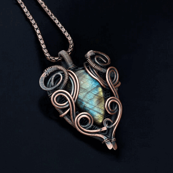 This handcrafted jewelry piece seamlessly balances everyday wear with luxury. The labradorite stone, known for its captivating flashes of blue, green, and gold hues, pairs perfectly with copper’s warm tones, creating a harmonious blend that’s suitable for casual outings and formal events alike. Wear it as a personal style statement or incorporate it into your collection of treasured accessories.