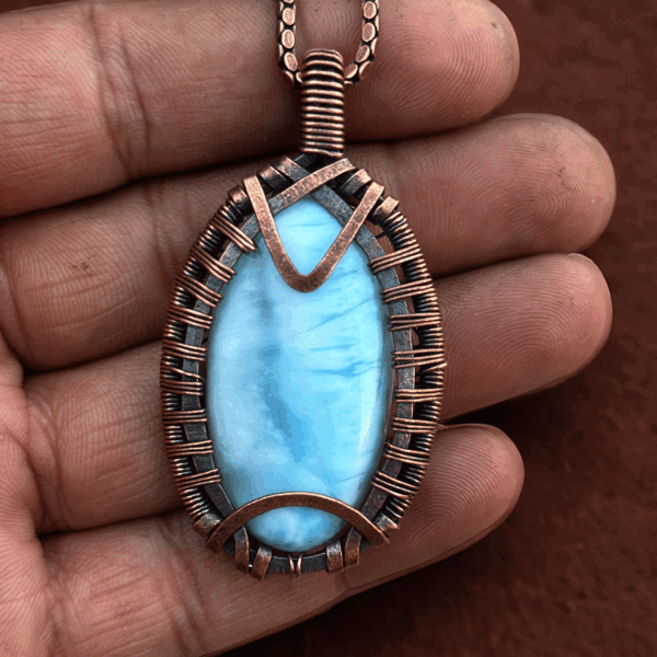 Larimar copper pendant jewelry is more than just an accessory; it’s a fusion of elegance and wellness. Each piece is meticulously crafted, ensuring that the larimar is securely set within the copper framework. This combination results in a pendant that is not only visually stunning but also imbued with the calming energies of larimar and the healing properties of copper.