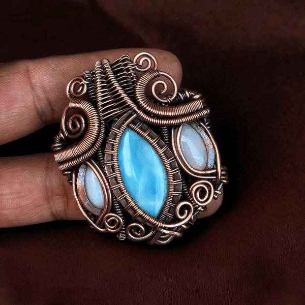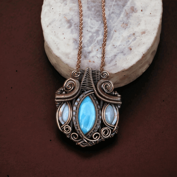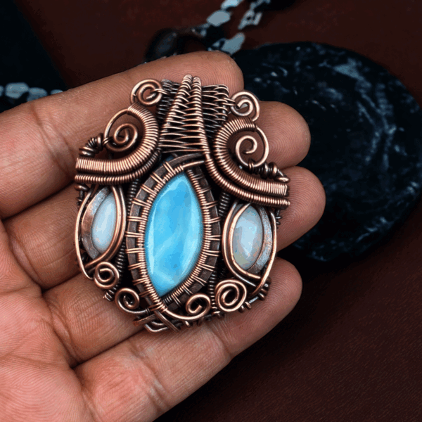 Larimar copper pendant jewelry is an exquisite accessory that combines the natural beauty of larimar stone with the rustic charm of copper. This unique combination offers a striking piece that not only enhances your style but also carries a touch of nature’s elegance.