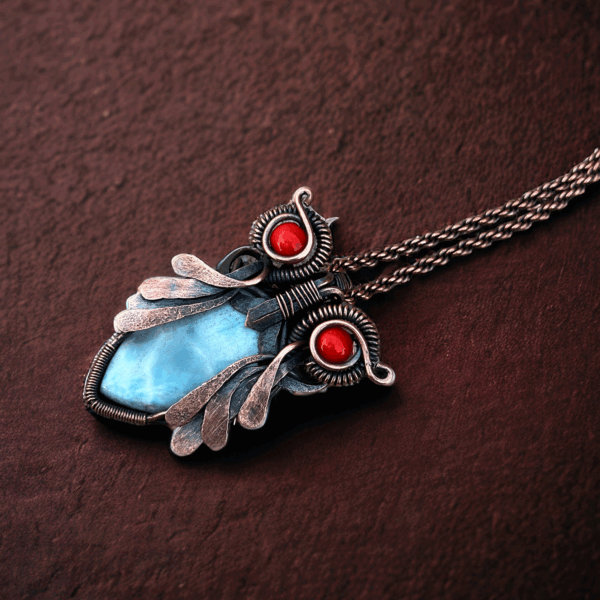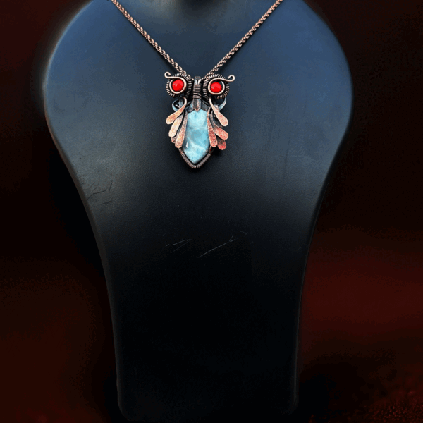 Be the first to review “Larimar Owl Copper Pendent/ gift for her jewelry/ anniversary gift for her gift for her/ unique holiday gift for him/ crystal jewelry”