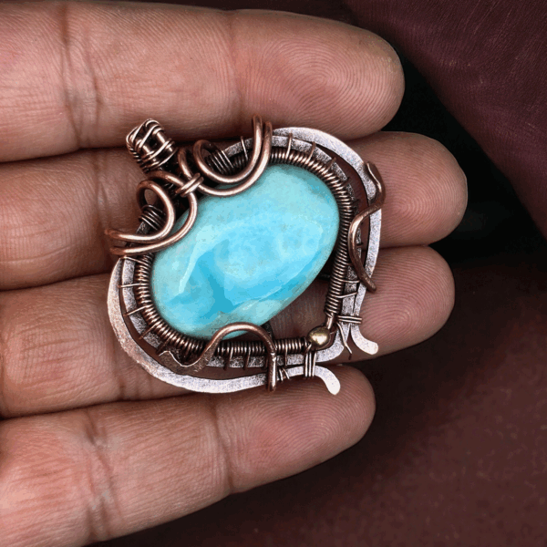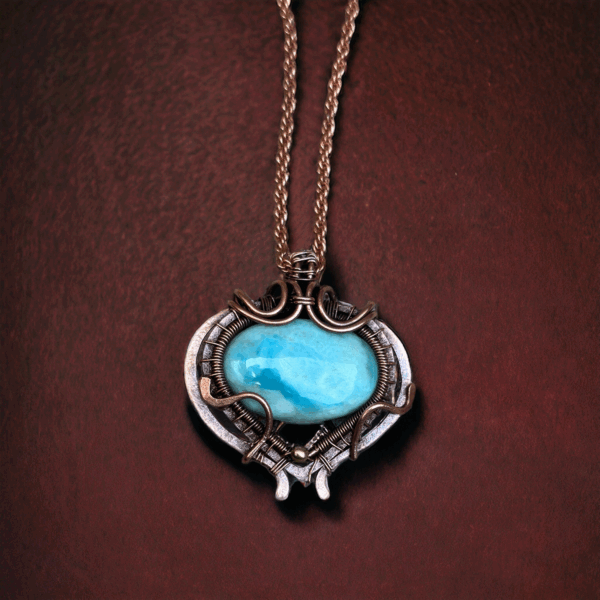 The Larimar copper jewelry pendant is a stunning piece that combines the rare beauty of Larimar stone with the timeless appeal of copper. This exquisite pendant is not only a symbol of elegance but also a representation of nature’s finest artistry. In this product description, we will explore the unique attributes of this pendant and why it is a must-have for jewelry enthusiasts.