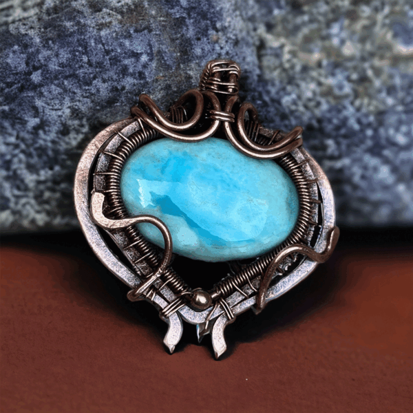 In conclusion, the Larimar copper jewelry pendant is a timeless and elegant addition to any jewelry collection. Its unique combination of rare Larimar stone and classic copper setting makes it a standout piece that is sure to draw admiration. Whether for personal use or as a thoughtful gift, this pendant is a perfect choice for jewelry lovers.
