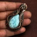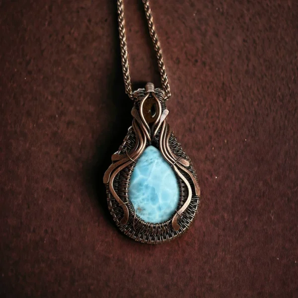 Larimar is a rare, blue variety of the silicate mineral pectolite found only in the Dominican Republic. Its striking blue color is reminiscent of the Caribbean Sea, making it a highly sought-after gemstone. The natural patterns within each larimar stone are unique, ensuring that every piece of larimar copper pendant jewelry is one-of-a-kind.