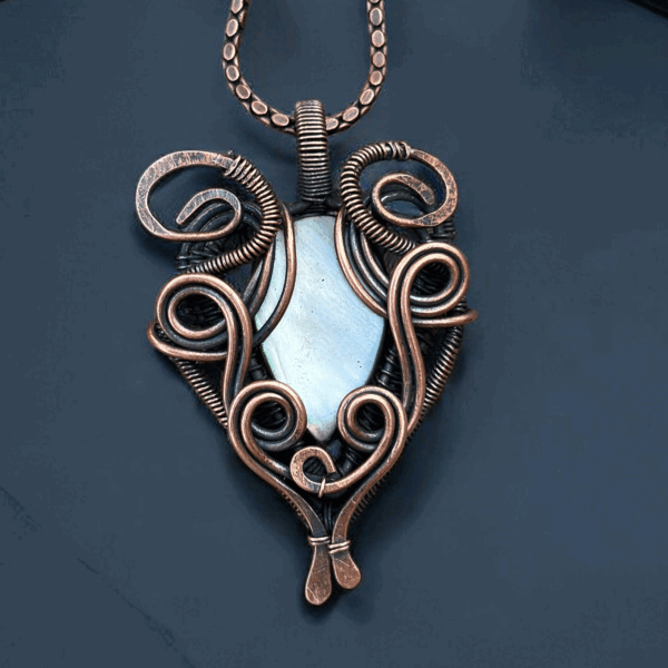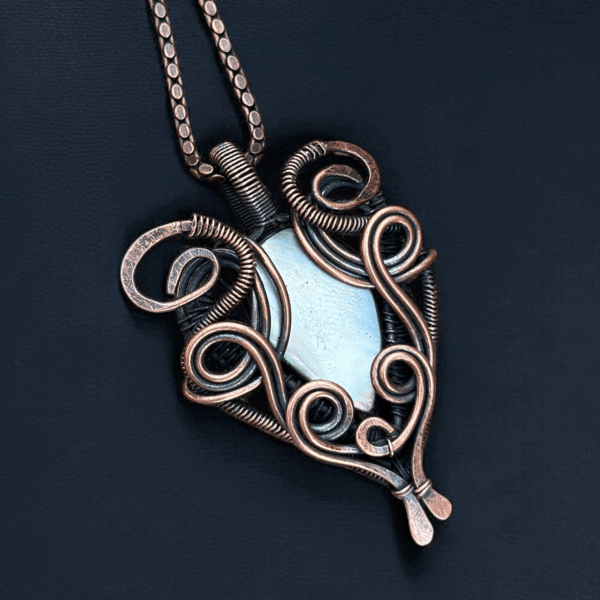 This pendant showcases a polished copper frame encasing the luminous and naturally stunning mother of pearl centerpiece. The harmonious blend of copper’s warm sheen with the iridescent beauty of mother of pearl ensures a refined and versatile look suitable for any occasion. Handmade by skilled artisans, the durability and charm of this pendant transform it into a long-lasting keepsake for anyone in search of unique jewelry.