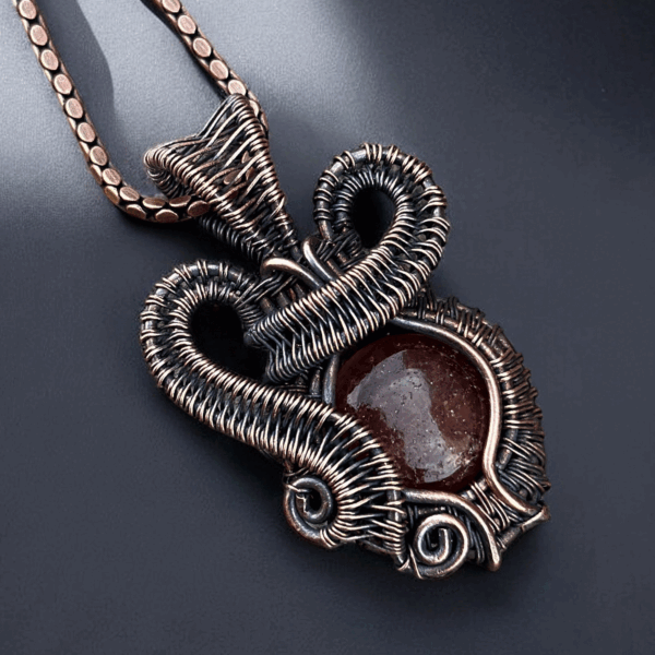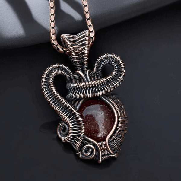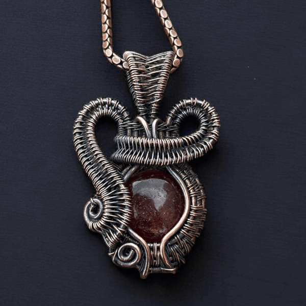 Every pendant is meticulously handcrafted, ensuring every detail reflects the artisan’s dedication to quality and beauty. The strawberry stone is carefully polished to achieve a flawless shine, while the copper setting lends a rustic yet polished appeal. This thoughtful craftsmanship ensures durability and a piece that stands out. Ideal for women who appreciate one-of-a-kind jewelry, this pendant offers a beautiful way to showcase your individuality.
