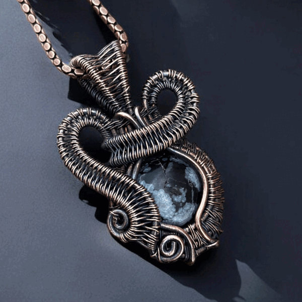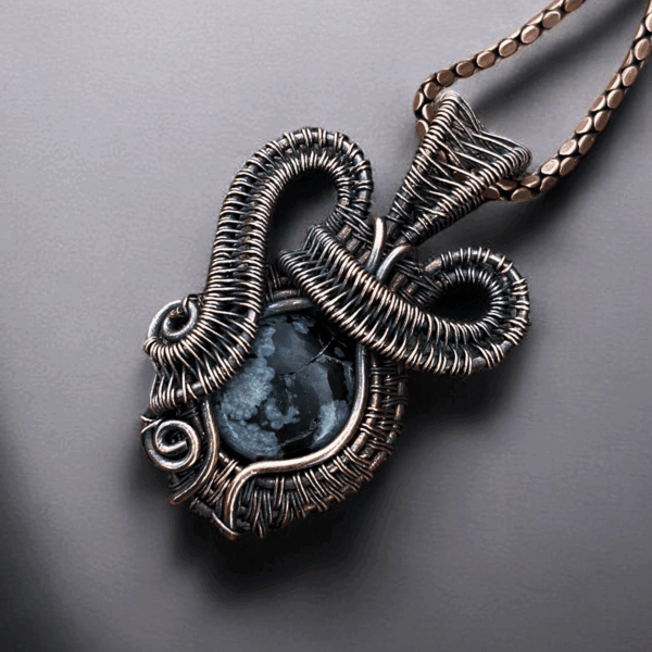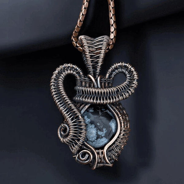Introducing the Snowflack Stone Copper Pendant, a one-of-a-kind piece of handmade jewelry that blends rustic charm with timeless elegance. Designed with the modern yet artistic woman in mind, this pendant is not just an accessory—it’s a statement of individuality and sophistication. Whether you’re looking for a perfect gift for her or a personal treat to elevate any outfit, this pendant is an exquisite choice.