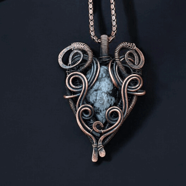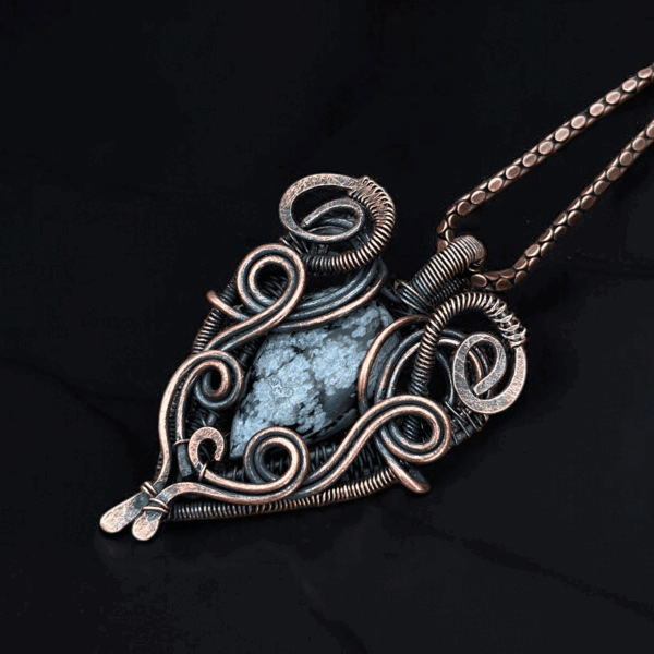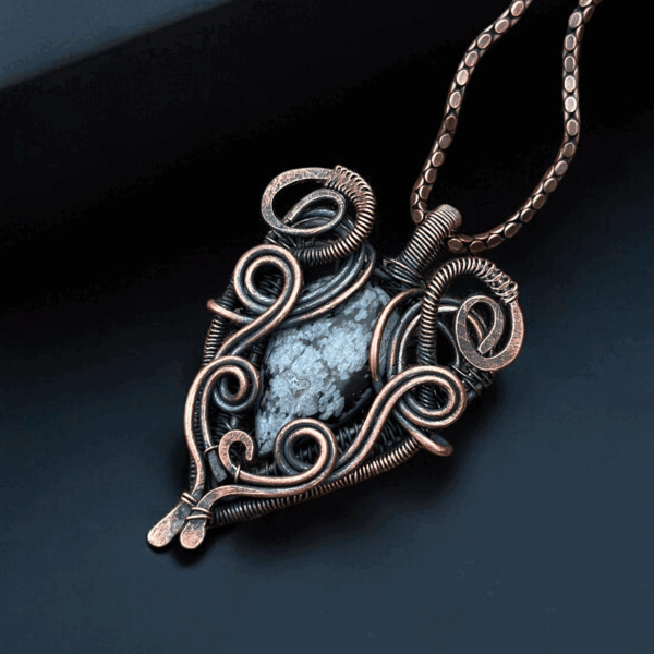 Introducing the Snowflack Stone Copper Pendant, a one-of-a-kind piece of handmade jewelry that blends rustic charm with timeless elegance. Designed with the modern yet artistic woman in mind, this pendant is not just an accessory—it’s a statement of individuality and sophistication. Whether you’re looking for a perfect gift for her or a personal treat to elevate any outfit, this pendant is an exquisite choice.