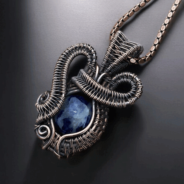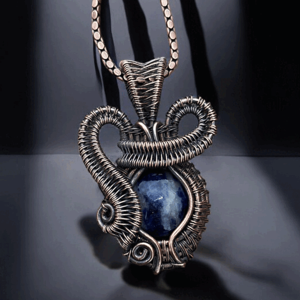 Discover the beauty of the Sodalite Stone Copper Pendant—a piece of handmade jewelry that blends sophistication and rustic charm. Crafted meticulously, this pendant features an enchanting sodalite stone encased in warm-toned copper, making it the perfect accessory to complement any outfit. Whether you’re looking for a meaningful gift or a distinctive addition to your personal collection, this pendant evokes timeless elegance and natural allure.